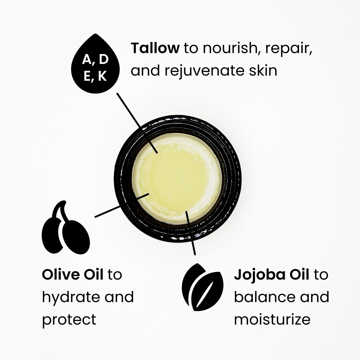 Our balms are made from 100% natural, grass-fed, and grass-finished tallow to nourish and protect your skin.
