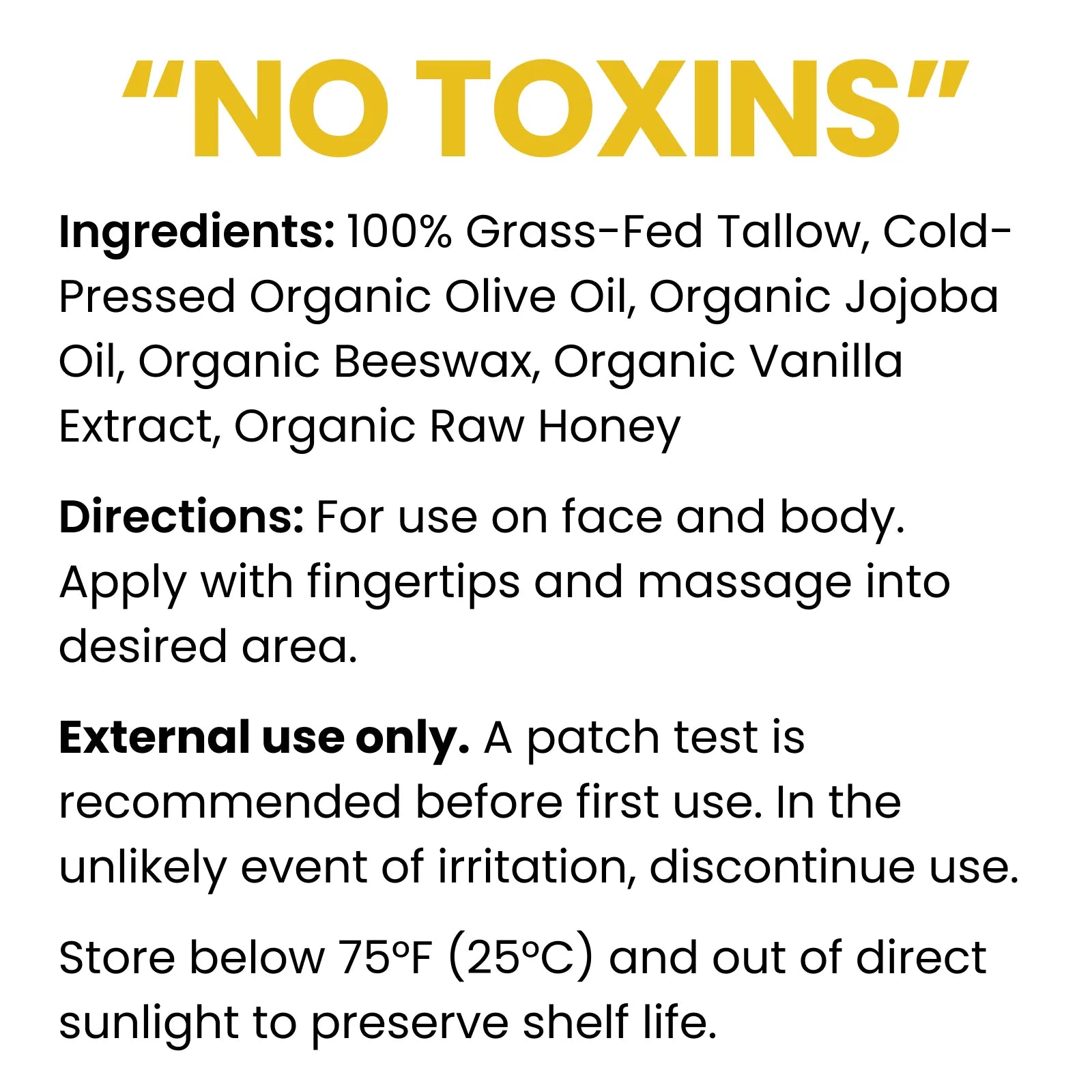Nourish your skin with pure, natural ingredients. Made from 100% Grass-Fed Tallow, Cold-Pressed Organic Olive Oil, Organic Jojoba Oil, and Organic Beeswax, and infused with Organic Vanilla Extract and Organic Raw Honey, this balm is free from synthetic chemicals and artificial fragrances. It's gentle on sensitive skin and perfect for eczema, psoriasis, and other skin conditions with its therapeutic effects.